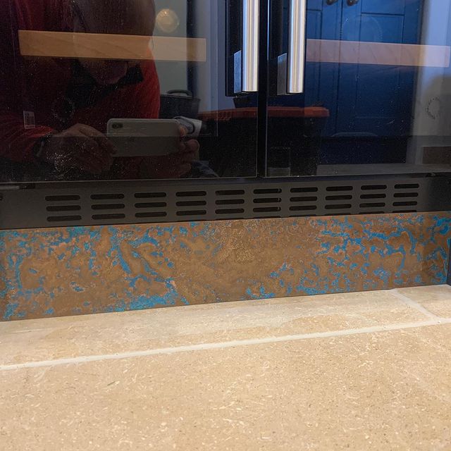 Verdigris is the patina that appears on certain metals when they’re exposed to the elements, like old sculptures or rooftops that turn a mint green. By speeding up the ageing process, we create this reaction to the degree you wish.